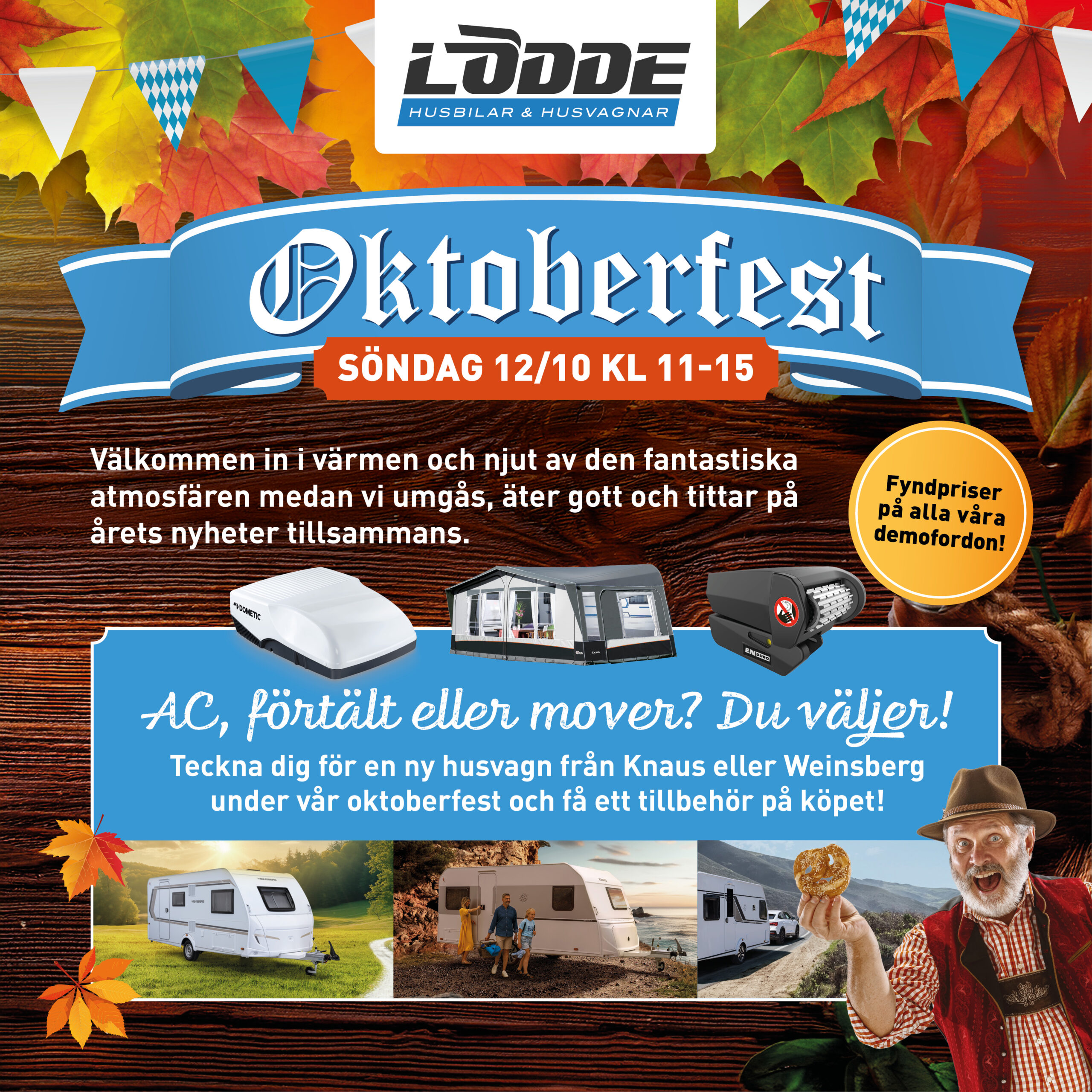 Den 12/10 tömmer vi gården för att göra plats åt nya modeller. Fantastiska fyndpriser på demobilar och demovagnar, kanonpriser på 2026 års modeller, utförsäljning av butiksvaror, kampanjpriser på campingmöbler....