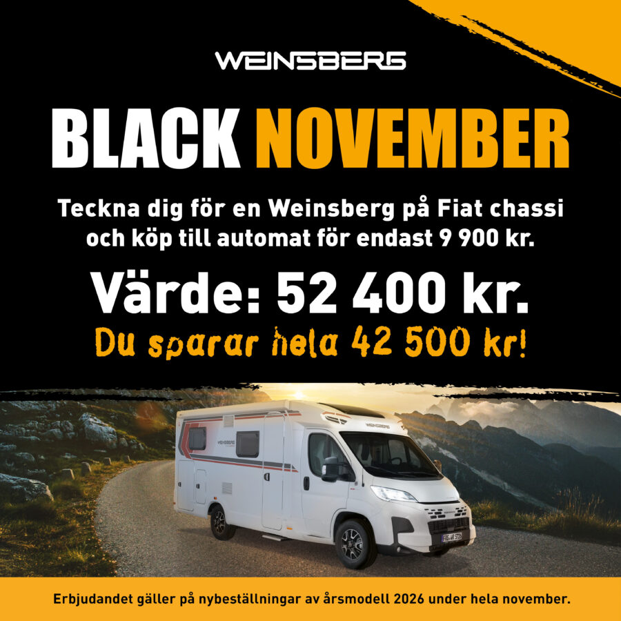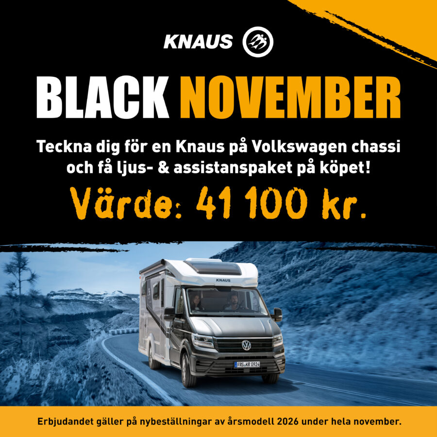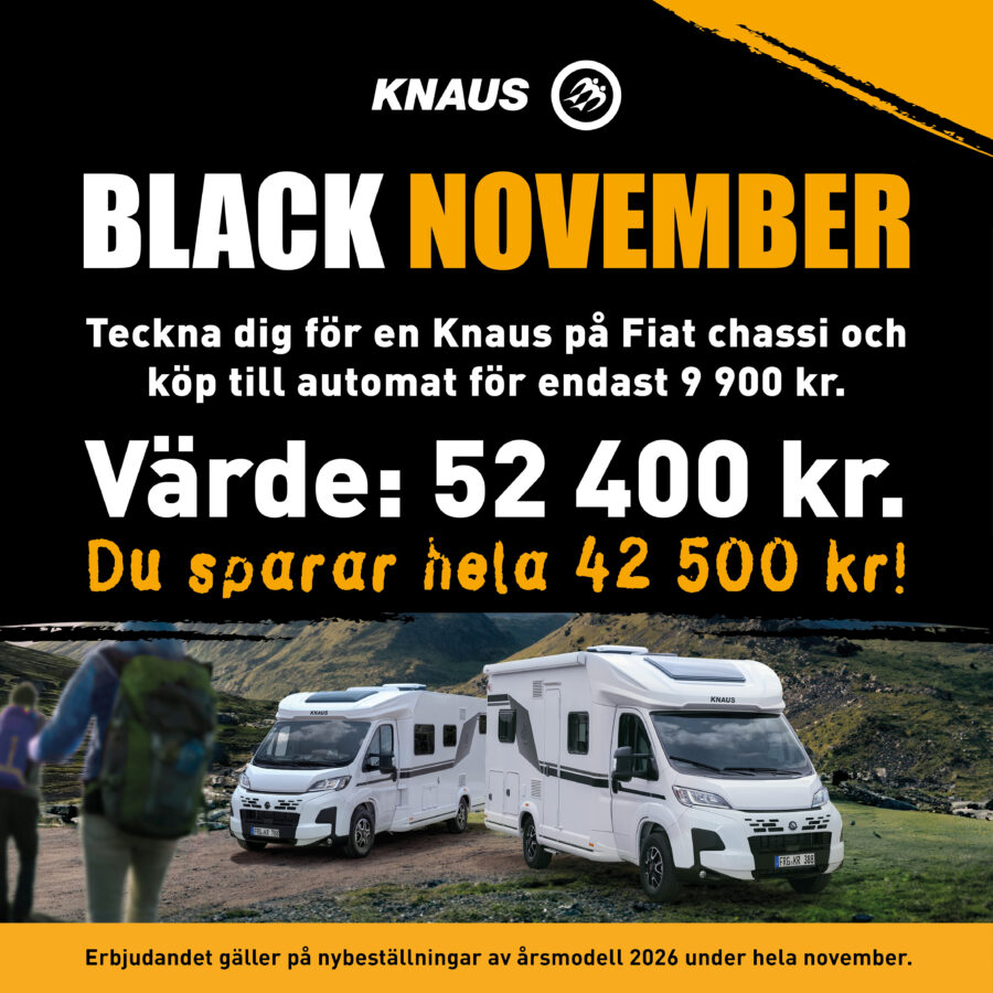Black November-priser på husbilar från Knaus och Weinsberg när du tecknar dig för en ny bil.
