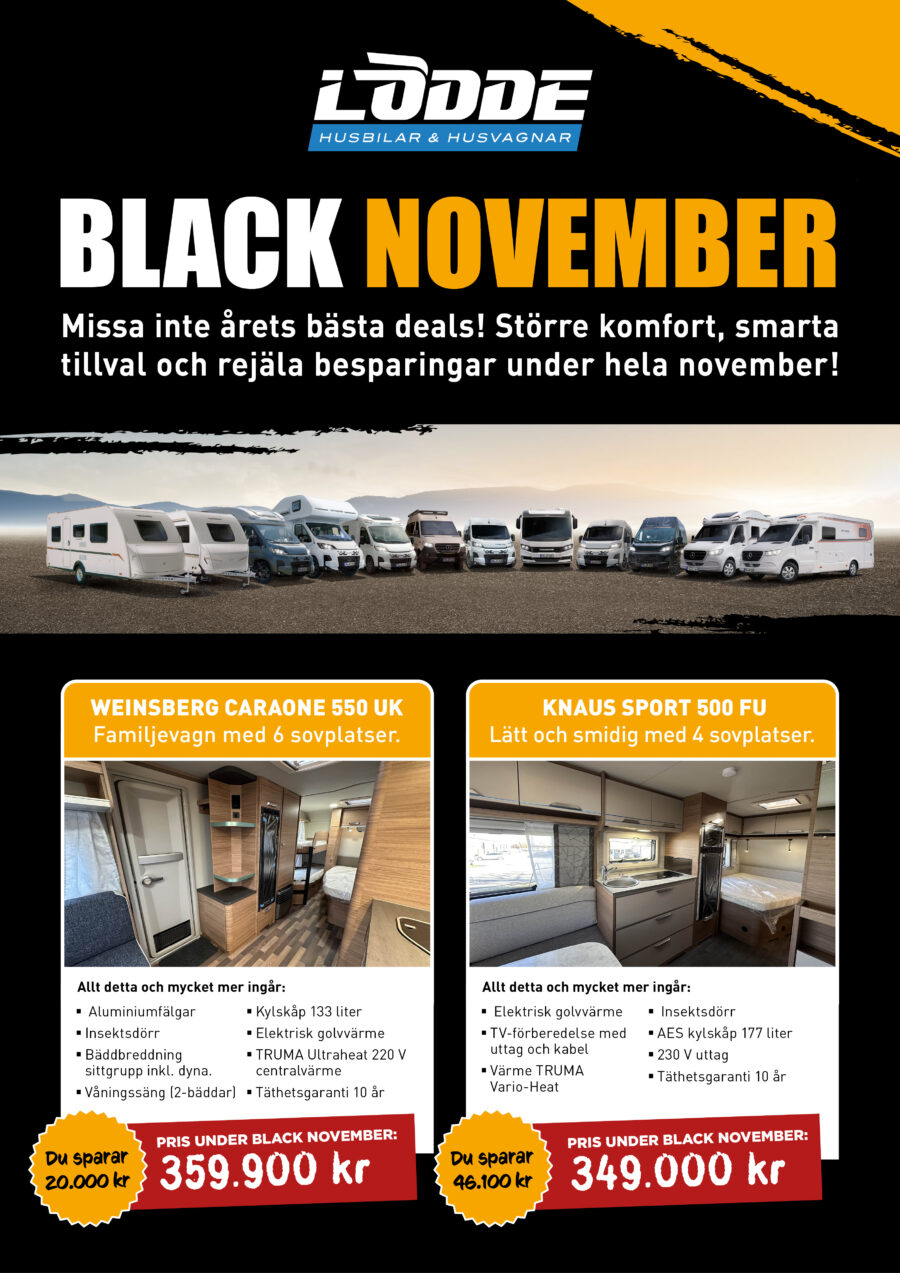 Black November-priser på husbilar från Knaus och Weinsberg när du tecknar dig för en ny bil.